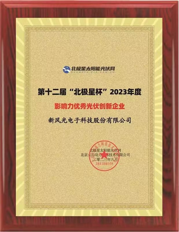 第十二屆“北極星杯”2023年度影響力優(yōu)秀光伏創(chuàng )新企業(yè)