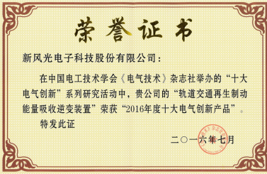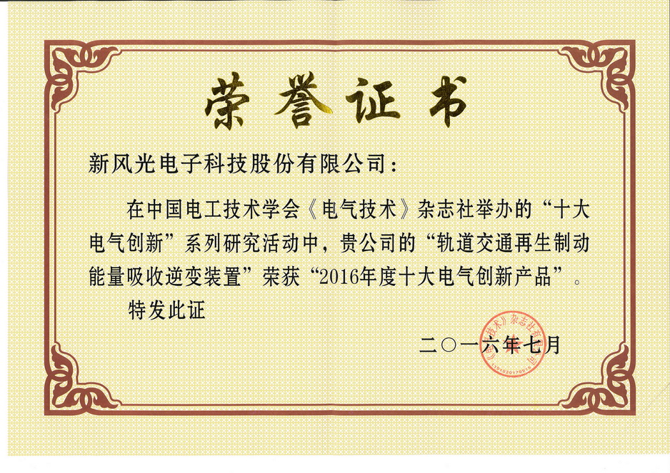2016年度電氣創(chuàng )新產(chǎn)品證書(shū)