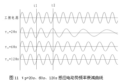由公式曲線(xiàn)分別作出τp=20s、60s、120s的電動(dòng)機感應電動(dòng)勢頻率衰減曲線(xiàn),如圖11所示。