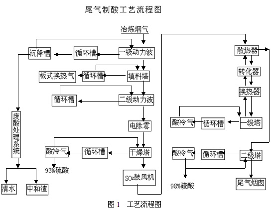 吐魯番工企礦冶有限公司銅冶煉廠(chǎng),是新疆維吾爾自治區吐魯番地區較大的國有企業(yè),由于國家對銅冶煉尾氣處理的要求越來(lái)越高,公司領(lǐng)導在綜合考慮各方面的因素后,認為單純處理尾氣,還不如變廢為寶,將尾氣凈化處理后,將其中的SO2轉變成硫酸,這樣即處理了尾氣,達到國家尾氣排放標準,又派生出新產(chǎn)品硫酸,可以獲得新的經(jīng)濟效益,一舉兩得,是這次設備改造及尾氣處理的雙重收益。