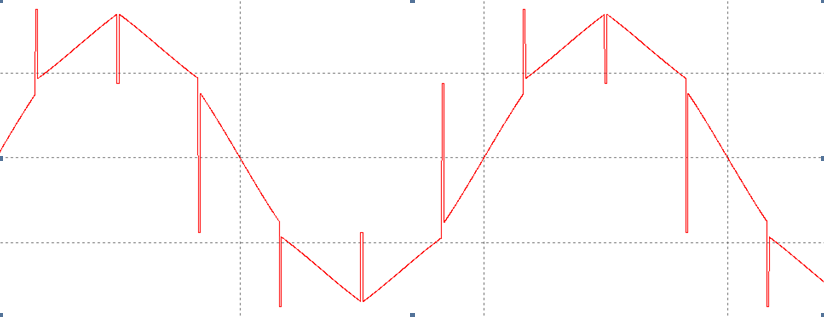 在模擬電路產(chǎn)生信號中,主要還是對線(xiàn)電壓或者相電壓過(guò)零點(diǎn)的獲取,在過(guò)零點(diǎn)的獲取中常用的是用運放進(jìn)行過(guò)零比較。在反向整流工作中,由于電源的內阻存在,在輸入電源上就存在IGBT開(kāi)通或關(guān)斷時(shí)產(chǎn)生的缺口,如圖1所示: