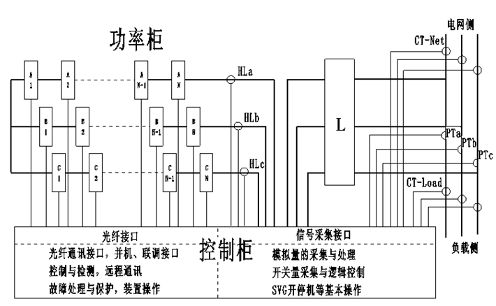 FGSVG系列產(chǎn)品采用進(jìn)口電力電子模塊作為主功率器件,多個(gè)DSP和FPGA組成強大的控制系統。在控制算法上采用了先進(jìn)的瞬時(shí)無(wú)功理論,實(shí)現了對系統/負載無(wú)功功率的快速準確的檢測。為了得到更快的響應速度和更高的性能采用了電流直接控制技術(shù)和載波移相技術(shù),實(shí)現了并網(wǎng)無(wú)功電流的快速控制和更優(yōu)的并網(wǎng)電流波形。FGSVG能夠快速連續地提供容性或者感性無(wú)功功率,實(shí)現適當的電壓和無(wú)功功率控制,保障電力系統穩定、優(yōu)質(zhì)地運行。