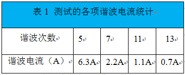 表1 測試的各項諧波電流統計