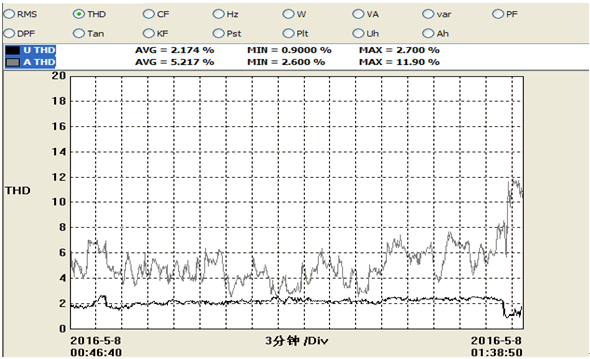 變壓器后端負荷為單一負載,SVG可以自動(dòng)跟蹤補償電網(wǎng),減少對電網(wǎng)的沖擊,有效的降低了現場(chǎng)生產(chǎn)對電網(wǎng)的污染。