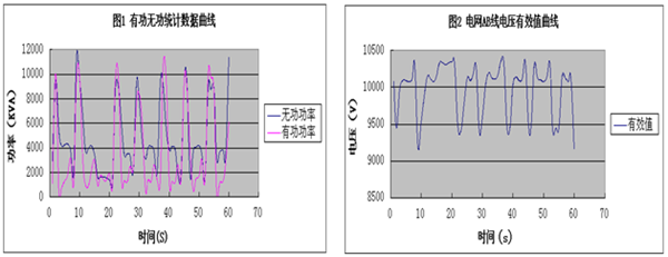 通過(guò)使用山東新風(fēng)光電子科技發(fā)展有限公司生產(chǎn)的FGSVG系列高壓動(dòng)態(tài)無(wú)功補償裝置,軋鋼廠(chǎng)現場(chǎng)電網(wǎng)側母線(xiàn)在一周內功率因數超過(guò)0.95,在軋鋼機運行時(shí)電網(wǎng)電壓有效值波動(dòng)基本低于400V,極大地抑制了電壓閃變的現象,減少了公司設備的故障率,提高了軋鋼機的運行效率。同時(shí)FGSVG產(chǎn)品體積小,運行穩定,操作方便,自身功率損耗低。為使用單位帶來(lái)了可觀(guān)的經(jīng)濟效益。