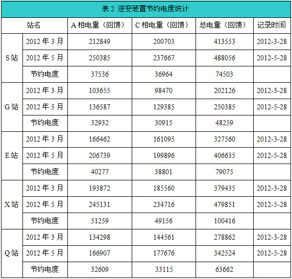 根據業(yè)主電度表計量的數據,重慶某線(xiàn)路逆變裝置節電效果明顯。具體數據如表2;