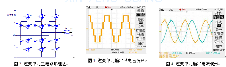 裝置為得到大功率輸出可采用多個(gè)逆變單元并聯(lián),每個(gè)單元獨立控制,具有冗余工作的特點(diǎn),即使單元出現保護,其余逆變單元可以正常工作,進(jìn)一步提高裝置運行的可靠性。而且每個(gè)逆變單元結構上完全一致,可以互換,這使得調試、維修非常方便。