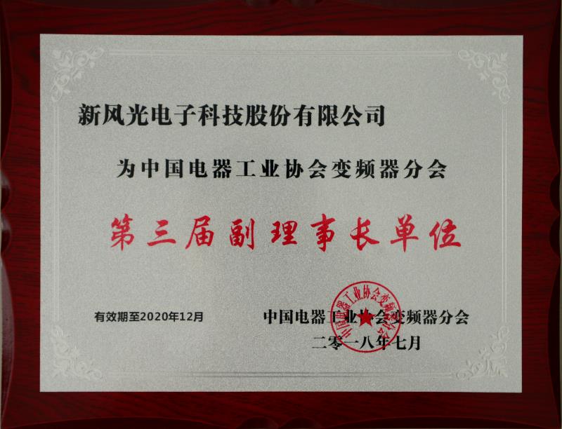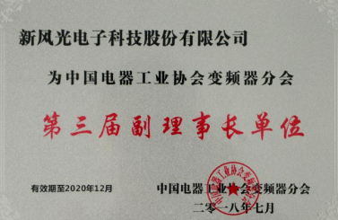 中國電器工業(yè)協(xié)會(huì )變頻器分會(huì )第三屆副理事長(cháng)單位