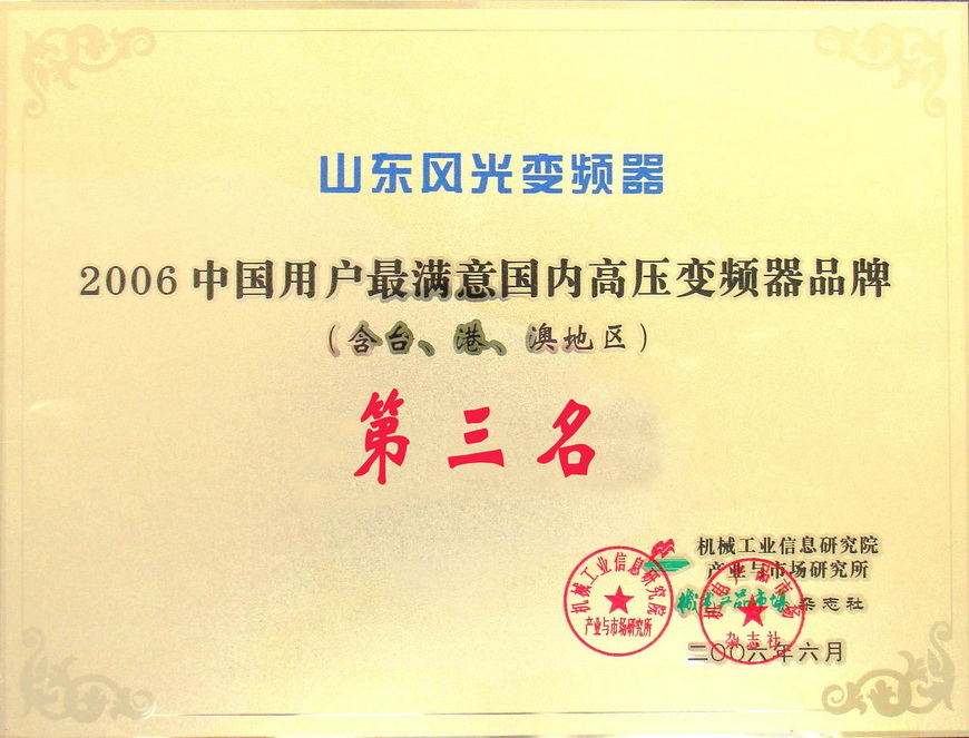 2006年中國用戶(hù)滿(mǎn)意國內高壓變頻器品牌