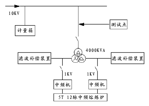 湖南某機械鑄造廠(chǎng)中頻熔煉爐現場(chǎng)配電系統一次圖,如圖1所示。